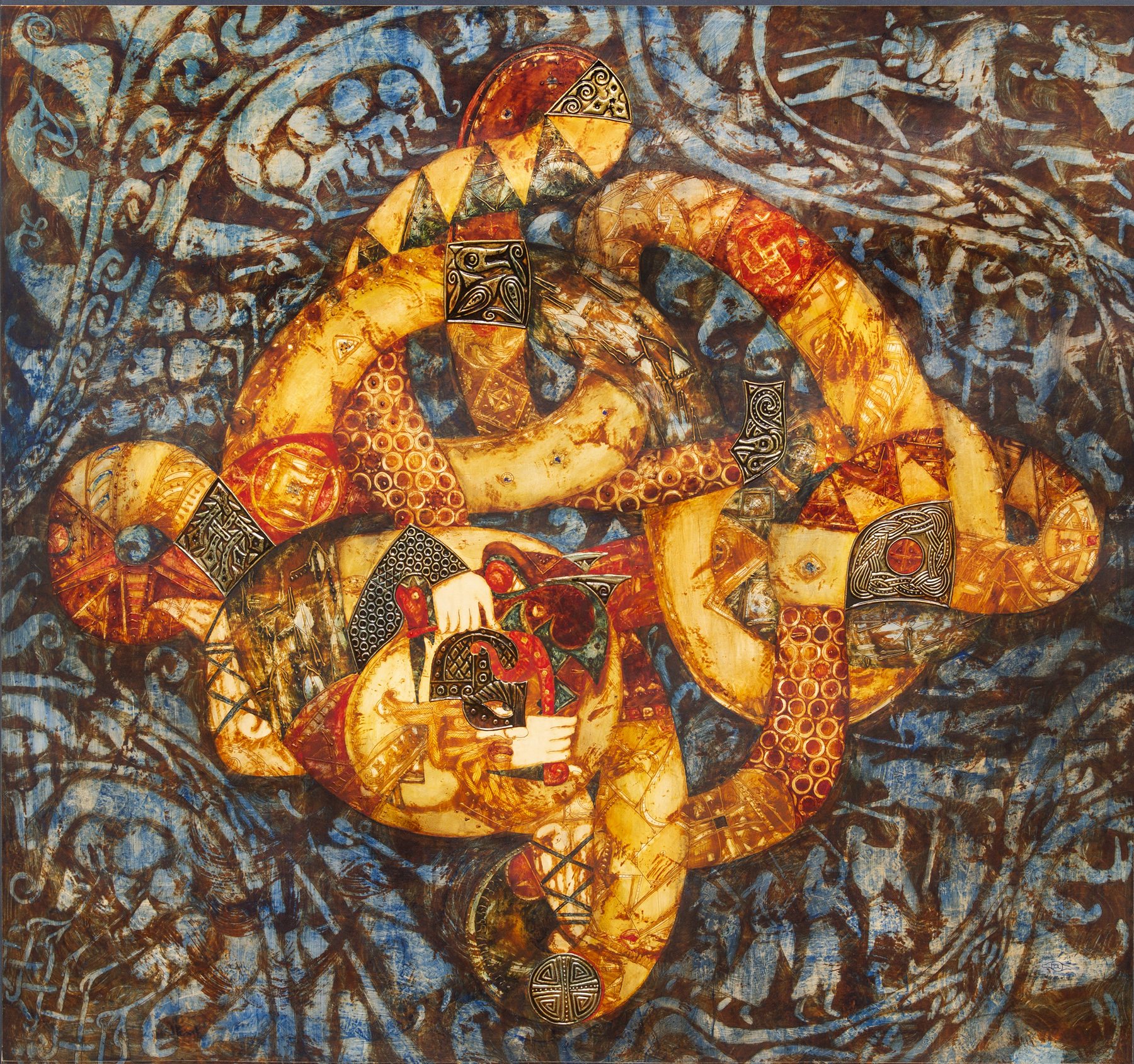 80x80 cm, oil, tempera, metal on paper