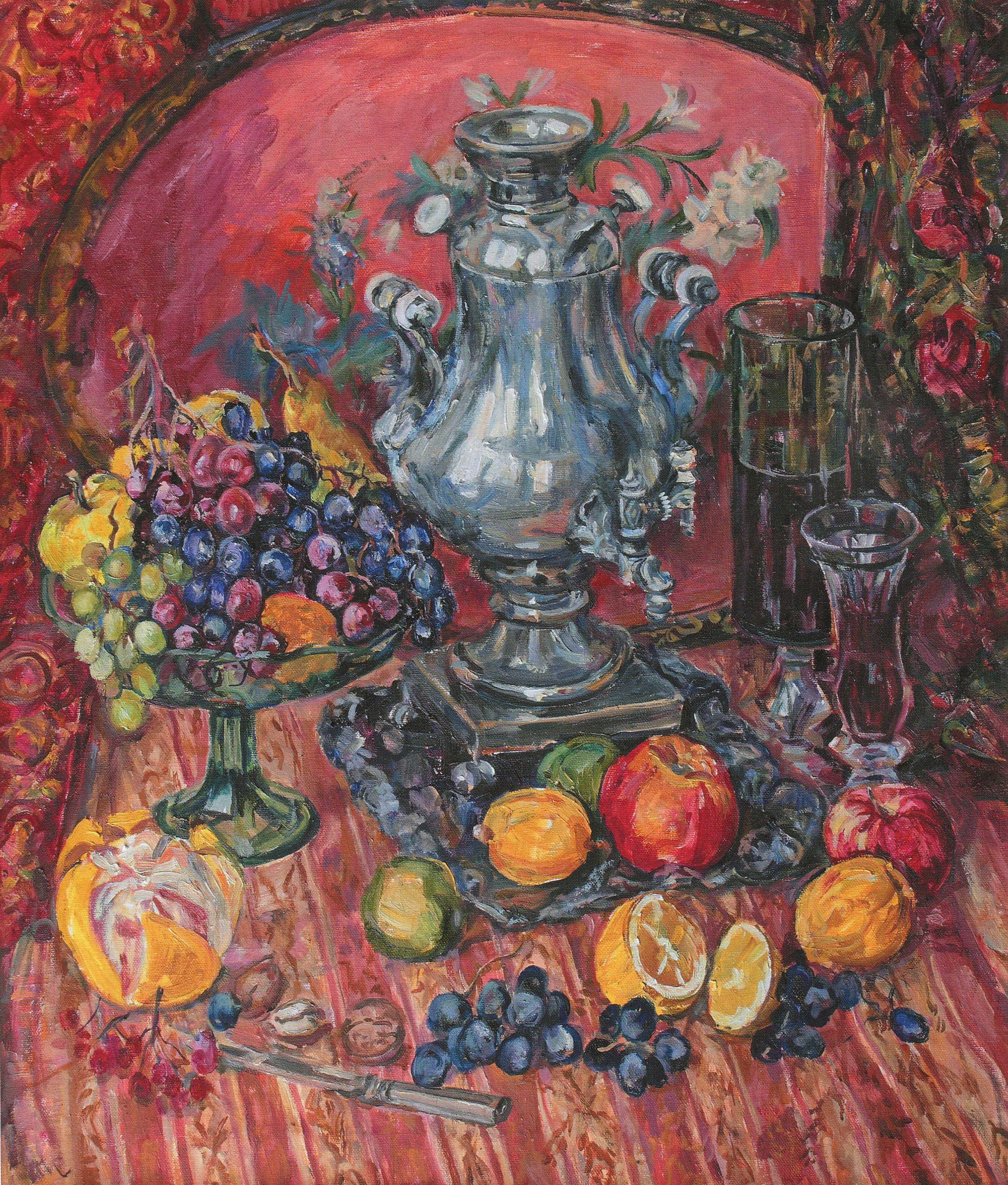 Натюрморт с самоваром и фруктами