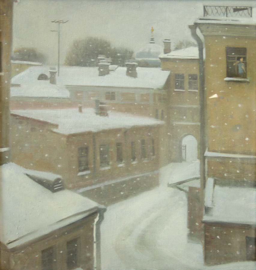 двор. Идет снег