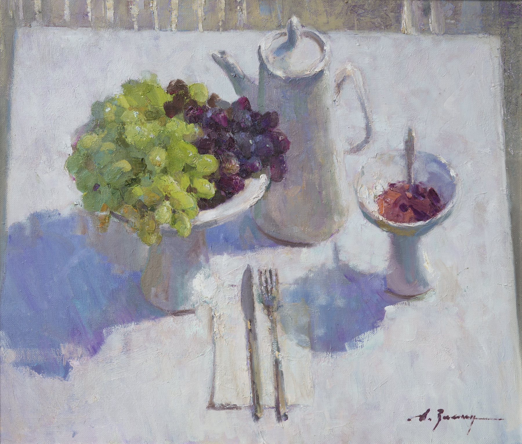 ваза с вареньем и виноградом