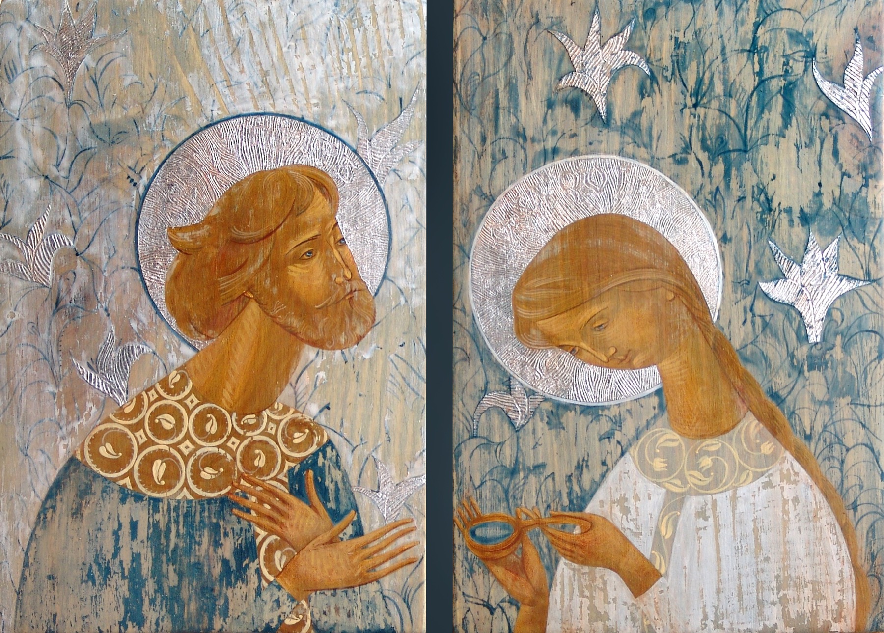 21x14 cm, dyptich, oil, acrylic, gold foil on board