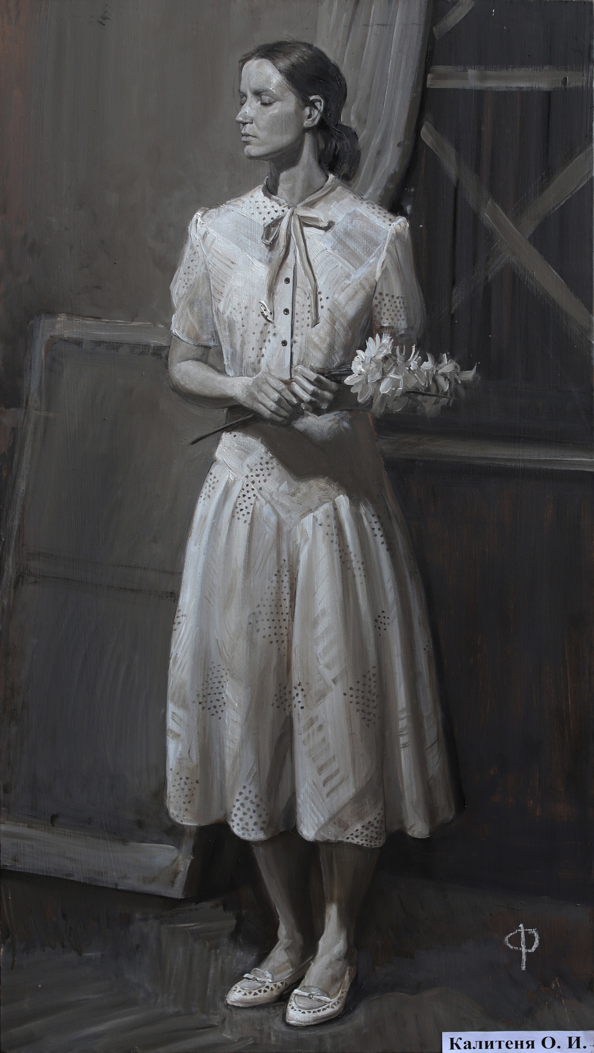 Post-war girl with flowers. 2021