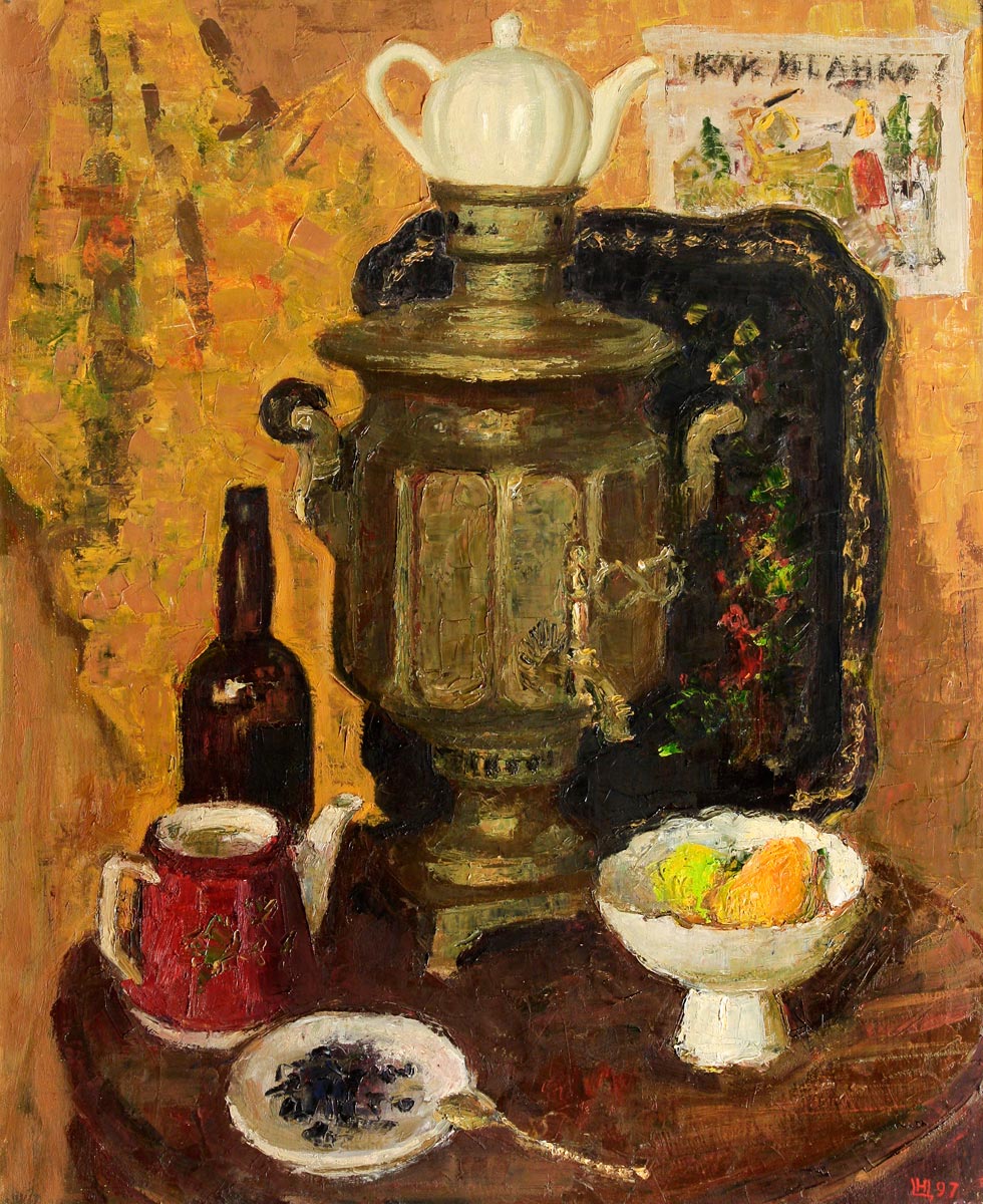 Samovar on golden background