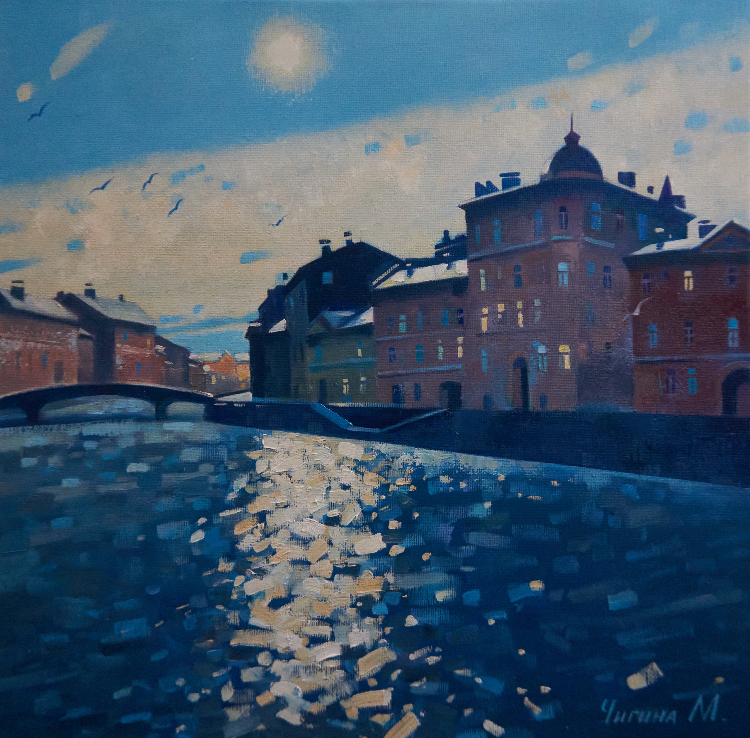 The sun over the Fontanka river